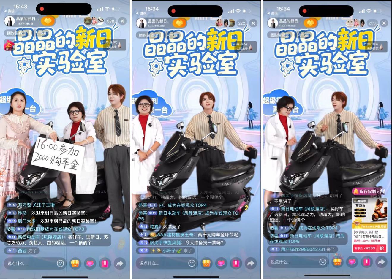 更亮眼的是新日对“高管IP”的深度盘活,“BOSS价到”系列专场直接拉满信任值。,新日股份董事张晶晶亲自下场,不玩虚话术,当场拆车解密核心科技,同步甩出“零元抽车”“千元购车金直减”等实在福利。通过“明星引流+高管背书+区域深耕”的组合拳,打通从全国声量到本地转化的“最后一公里”,多场区域专场GMV破百万,构建线上种草-线下提车的完整闭环,真正实现既玩得转,更卖得火。