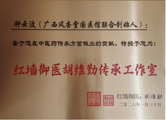 周枫女士,广西风杏堂国医馆创始人,中南海大师,红墙御医胡维勤教授亲传弟子,红墙御医胡维勤传承工作室负责人。由于经历了一段感人至深的故事,驱使她萌生涉足中医的起心动念。那是2021年周女士的爱人黄先生,被诊断出肝癌晚期,当时医院给出的结论是只有两个月的生命周期。面对突如其来的灾难,周女士抱着一种“死马当成活马医”的心情,把丈夫的生命和家庭的希望,托付给了祖国中医,没想到奇迹发生了,她爱人黄先生身体越来越好,每次检查身体各项指标正常,癌细胞指数都维持在正常值以内。淋过雨的人更知道为别人撑起一把伞的重要,是中医拯救了她的爱人和家庭,她要感恩中医想让中医拯救更多的患者和家庭。于是在2024年她在联合创始人钟云波董事长的支持下,共同创建了广西风杏堂国医馆有限公司。